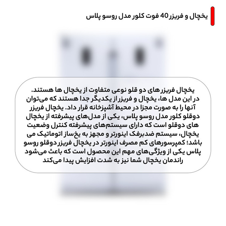 یخچال فریزر های دو قلو نوعی متفاوت از یخچال ها هستند. در این مدل ها، یخچال و فریزر از یکدیگر جدا هستند که میتوان آنها را به صورت مجزا در محیط آشپزخانه قرار داد. یخچال فریزر دوقلو کلور مدل روسو پلاس، یکی از مدلهای پیشرفته از یخچال های دوقلو است که دارای سیستمهای پیشرفته کنترل وضعیت یخچال، سیستم ضدبرفک اینورتر و مجهز به یخساز اتوماتیک میباشد؛ کمپرسورهای کم مصرف اینورتر در یخچال فریزر دوقلو روسو پلاس یکی از ویژگیهای مهم این محصول است که باعث میشود راندمان یخچال شما نیز به شدت افزایش پیدا میکند .