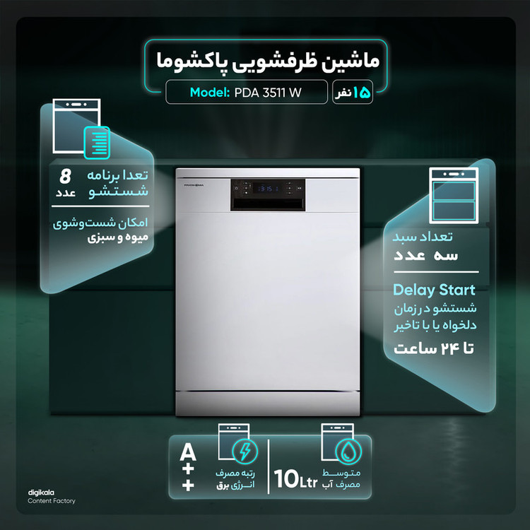ماشین ظرفشویی پاکشوما مدل PDA 3511